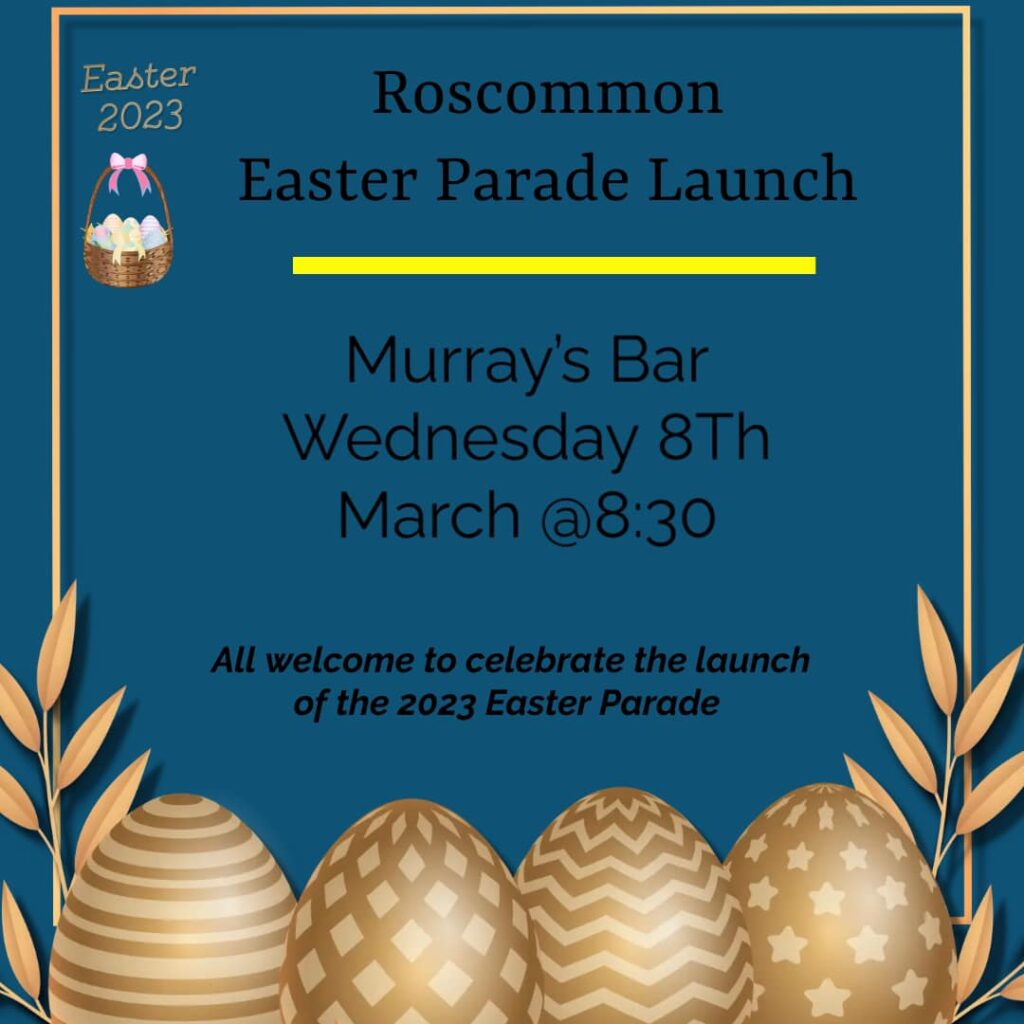 The launch of this years Easter Parade is on Wednesday The 8th of March in Murray’s bar Castle street. All welcome to come along and show support to this great annual event for the people of Roscommon. The Roscommon Easter Parade is expected to be on Easter Monday this year, 11th of April as Roscommon will play Mayo on Easter Sunday. More details will be available soon and can be found on their Facebook page.